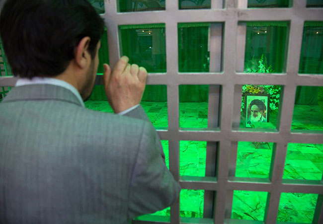 Man praying at the Mausoleum of Ayatollah Khomeini, south of Tehran
