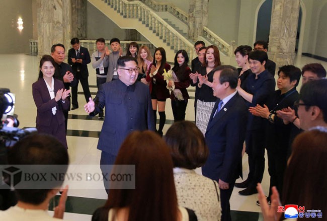 It was the first time a North Korean leader had attended a South Korean performance in the north’s capital, Pyongyang. Kim was seen clapping along to some of the songs during the two-hour concert on Sunday, and posed for photographs with the performers afterwards.