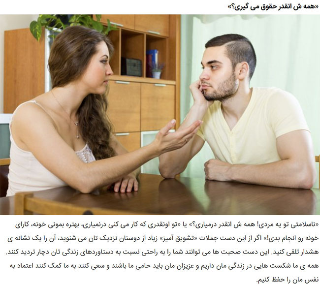 “You are a man! Is that all you’ve earned?” or “You don’t earn much at your work, it might be better to stay home and do the housekeeping!” If you keep hearing these “encouraging” phrases from your close friends, it’s a red flag. These words can easily make you doubt your own achievements. We all might have failures and our loved ones should support us and try to help us restore our self-confidence.