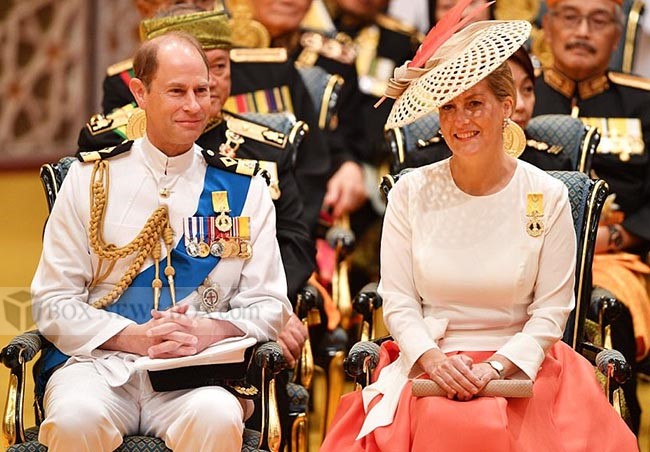 The ruler and his wife sat on golden thrones for a royal audience of several hundred that included the United Kingdom’s Prince Edward and Sophie Countess of Wessex.