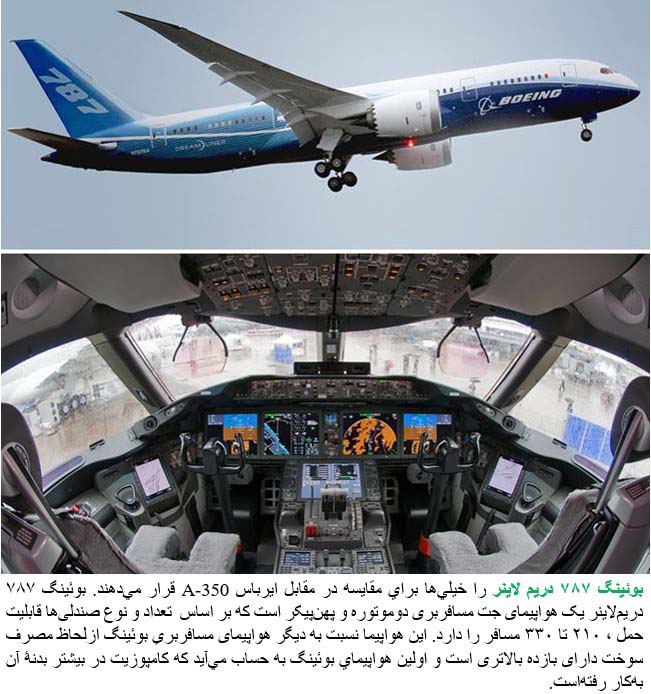 The Boeing 787 Dreamliner is a long-range, mid-size wide-body, twin-engine jet airliner developed by Boeing Commercial Airplanes. Its variants seat 242 to 335 passengers in typical 3-class seating configurations. It is Boeing’s most fuel-efficient airliner and is a pioneering airliner with the use of composite materials as the primary material in the construction of its airframe. The 787 was designed to be 20% more fuel efficient than the Boeing 767, which it was intended to replace. The 787 Dreamliner’s distinguishing features include mostly electrical flight systems, swept wingtips, and noise-reducing chevrons on its engine nacelles.