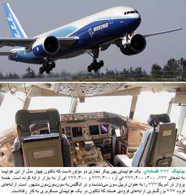 The Boeing 777 is a family of long-range wide-body twin-engine jet airliners developed and manufactured by Boeing Commercial Airplanes. It is the world’s largest twinjet and has a typical seating capacity for 314 to 451 passengers, with a range of 5,235 to 9,500 nautical miles. Commonly referred to as the “Triple Seven”, its distinguishing features include the largest-diameter turbofan engines of any aircraft, six wheels on each main landing gear, fully circular fuselage cross-section, and a blade-shaped tail cone.