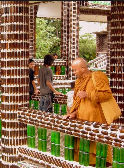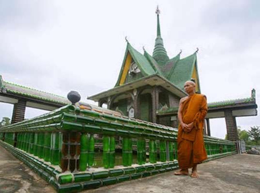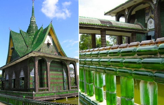 The Wat Pa Maha Chedio Kaew temple has found a way to bottle-up Nirvana, literally. The temple, which sits in Thailand’s Sisaket province, roughly 370 miles northeast of Bangkok is made of more than a million recycled glass bottles. True to its nickname, “Wat Lan Kuad” or “Temple of Million Bottles” features glass bottles throughout the premises of the temple, including the crematorium, surrounding shelters, and yes – even the toilets. There’s an estimated 1.5 million recycled bottles built into the temple, and as you might have guessed, they are committed to recycling more. After all, the more bottles they get, the more buildings they are able to construct.