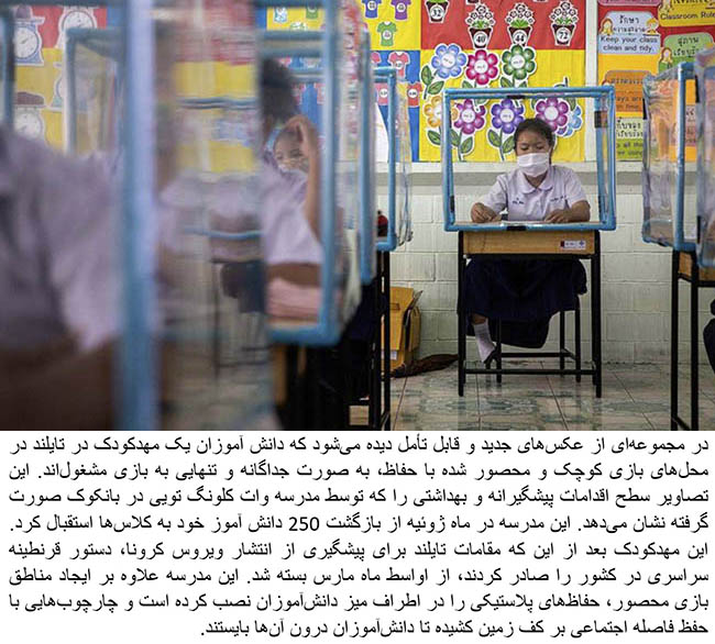 [custom_adv] Students at a nursery in Thailand can be seen playing separately in small screened-off play areas in a series of remarkable new photos. [custom_adv] The images, which were taken on Monday, show the level of health precautions taken by the Wat Khlong Toey School in Bangkok, which welcomed its 250 students back to the classroom in July. [custom_adv] The kindergarten had been closed since mid-March after authorities in Thailand issued a nationwide lockdown to prevent the spread of the virus. [custom_adv] As well as setting up enclosed play areas, the school has set up plastic screens around the students' desks and has marked out socially-distanced boxes on the floor for pupils to stand in. [custom_adv] There are also now temperature scanners in the nursery's entrance, with soap dispensers located outside each classroom.The protective measures come as another school just north of the Thai capital has asked its 5,000 students to self-isolate at home for 15 days before returning for the new academic year, The Independent reports. [custom_adv] Thailand, as of Monday, has 3,351 coronavirus cases and 58 deaths, according to statistics from Johns Hopkins University.Plastic screens also have been set up around students’ desks and their temperature is scanned before entering the facility, the newspaper adds. [custom_adv] ask-wearing pupils catching up with friends at one Bangkok high school were quickly told to spread out as they headed back to lessons on Wednesday after months of distance learning due to coronavirus restrictions. [custom_adv] The teenagers, resuming classes along with all other public school students in the kingdom, chatted animatedly before being called to sit in widely spaced rows for the opening session. [custom_adv] The school principal, Arwuth Meekhanphet, warned them all to closely follow new hygiene rules, which included the face coverings and social distancing. [custom_adv] Thailand has recorded more than 3,100 coronavirus cases and 58 deaths -- a low toll considering it became the first country outside China to detect an infection, in mid-January.