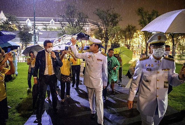 The 68-year-old monarch returned from Germany over the weekend, where he has drawn ire for luxuriating with a retinue of concubines during the pandemic as furious pro-democracy demonstrators rail against him at home.
