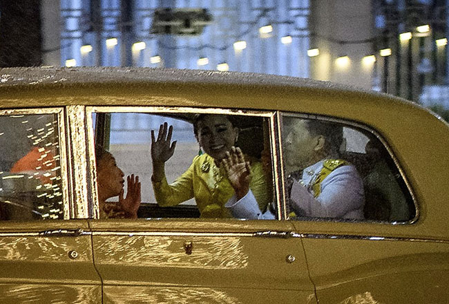 The fanfare of his arrival belied the fury with which demonstrators clashed with police as his motorcade rolled past earlier.