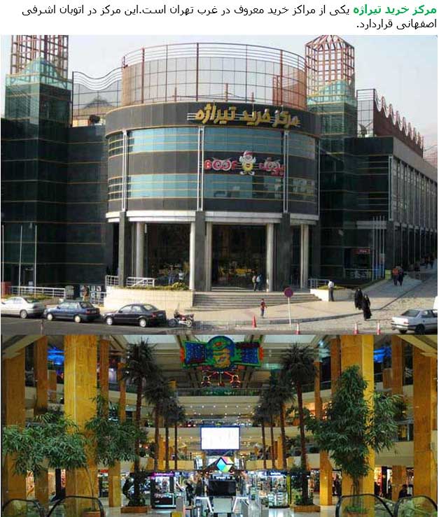 Tirajeh is one of most popular shop center in west of our capital of homeland.There are many famuse forign brands there .The shop owner has some other shop center in Kish island.Tirajeh has a play city on last stair that every body can enjoy their weekend.