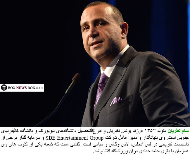 Sam Nazarian is an Iranian-American businessman, investor and philanthropist. He is the Founder, Chairman and CEO of SBE Entertainment Group.Nazarian was born to a Persian Jewish family in Tehran in 1975. The Nazarian family immigrated to the United States following the Iranian Revolution. He is the son of Younes Nazarian who made a fortune along with his brother Izak Parviz Nazarian as an early investor in Qualcomm. He was raised in Beverly Hills, California where he attended Beverly Hills High School and later studied at the University of Southern California.
