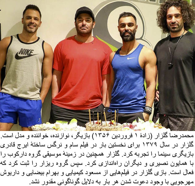 Mohammad Reza Golzar (born 21 March 1977) is an Iranian actor, singer, television host and model. Mohammadreza Golzar Azari was born on 21 March 1977 in a family with Persian-Azeri origin. His close friend Aria Sajadi was the one who helped him with his acting skills. He originality is Tat Persian and was born in Tehran. He studied Mechanical Engineering in Azad University. He was infected with the Corona virus in October 2020