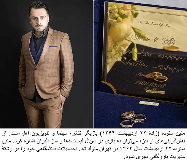Matin Sotoudeh is an actress, known for The Soul Thief (2017), The Day Comes (2013) and Another One’s House (2017). Having a clear plan before you start will help you keep on top of everything and be sure that you don’t forget something important. Insurance, rough guest list numbers and the budget should always be your first three things.