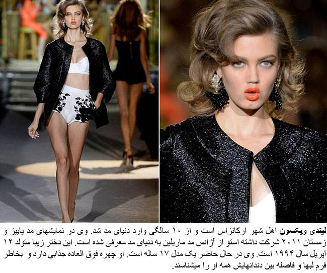 Lindsey Wixson (born April 11, 1994) is an American fashion model. She is known for her unique looks, defined in part by her “bee-stung lips”, “rosebud pout”, and gapped front teeth. She is best known for her campaigns with designers as Chanel, John Galliano, Versace Vanitas, Miu Miu, Jill Stuart and Alexander McQueen.As of July 2014, Wixson currently ranks 20th on the Top 50 Models Women list by MODELS.com.
