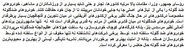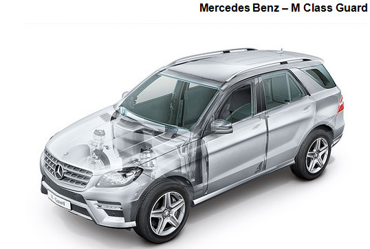 A civilian armored car is a security vehicle which made by replacing the windows of a standard vehicle (typically a limousine or SUV) with bulletproof glass and inserting layers of armor plate into the body panels. Unlike a military armored car, which has armor plate mounted on the outside of the vehicle, a civilian armored car typically looks no different from a standard vehicle.