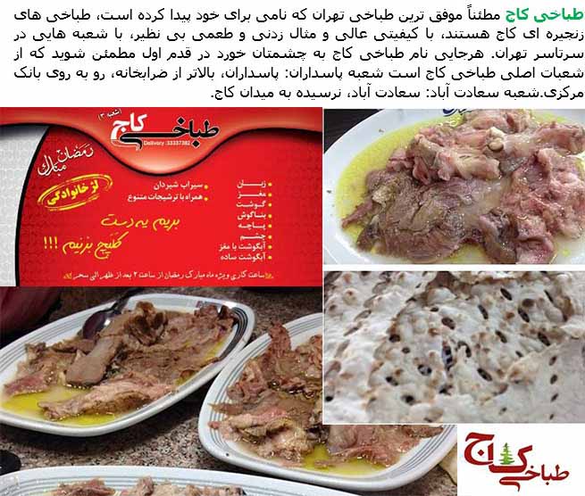 The Persian name kale pacha literally translates as head and shank which are the central ingredients in a variant of this dish. ale pache or kaleh pacheh is a version of khash made with a sheep’s entire head and its hooves. The dish is traditional to Azerbaijani and Iran. Usually consumed as a breakfast soup, it includes lamb’s head (including brain, eyes and tongues) as well as hooves, and is seasoned with lemon and cinnamon.To prepare kaleh pacheh, the heads and feet of sheep are collected, cooked and treated as per the recipe.Kaleh pacheh is almost always only served from three in the morning until sometime after dawn, and specialty restaurants (serving only kaleh pacheh) are only open during those hours.