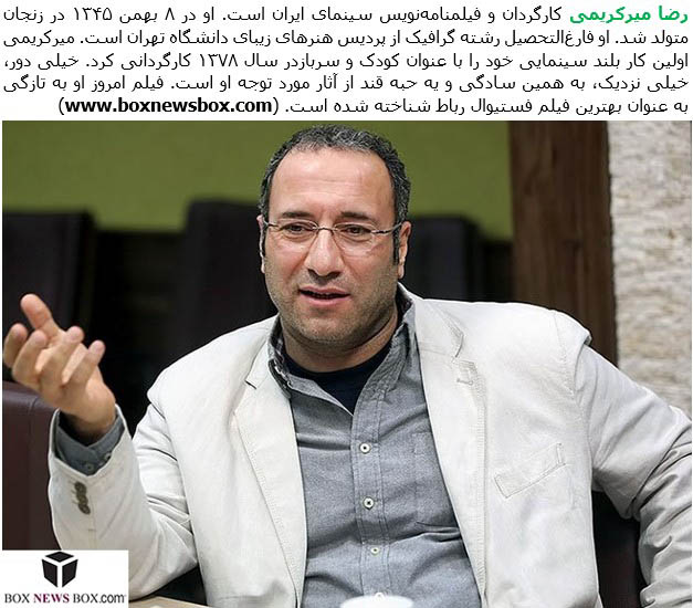Reza Mirkarimi (Born 1966 in Tehran) is an Iranian film writer and director. He graduated from Fine Arts University in Graphic Arts and His Cinema activities started from 1987 with a short film named ‘For Him’ (16mm Camera). He also contributes to young Iranian directors by producing their films. He has produced Don’t be Tired in 2012 and Voice of Silence in 2013.