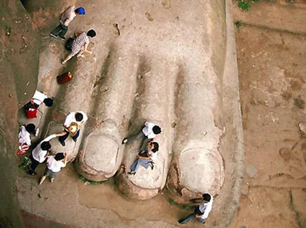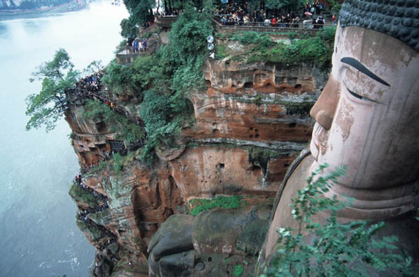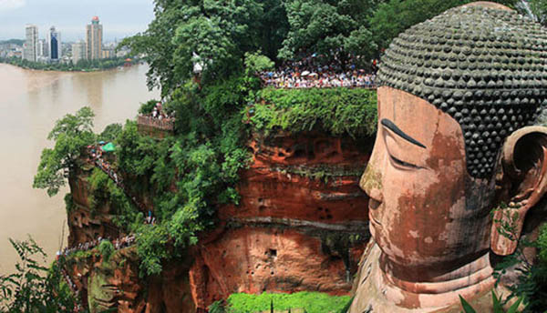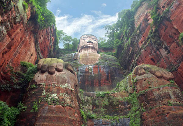 The stone sculpture faces Mount Emei, with the rivers flowing below his feet. It is the largest stone Buddha in the world and it is by far the tallest pre-modern statue in the world.
