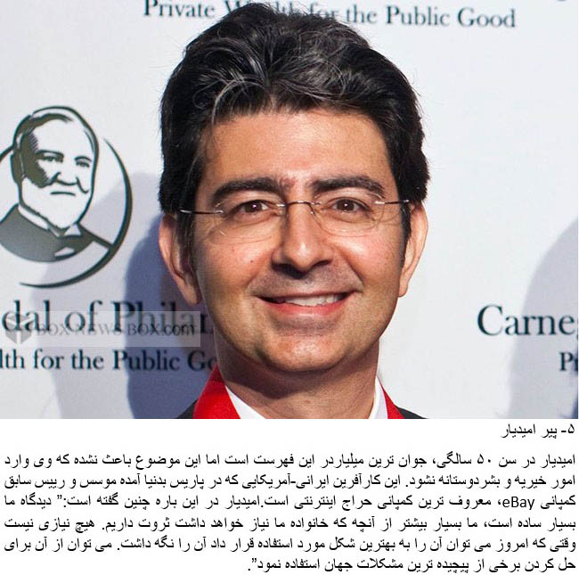 Omidyar started the Omidyar Foundation which includes the Omidyar Network, HopeLab, Humanity United, and Ulupono Initiative. The foundation supports many causes including human rights, hunger relief and entrepreneurship. He has already donated over $1 billion to charity, and he plans to leave very little for his family. “Our view is fairly simple. We have more money than our family will ever need. There’s no need to hold onto it when it can be put to use today, to help solve some of the world’s most intractable problems.”