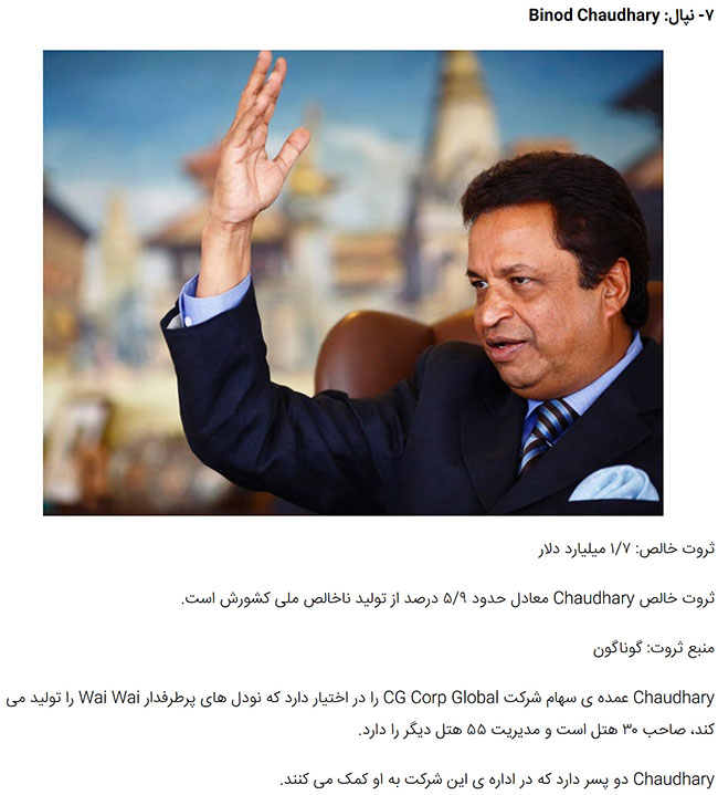 Chaudhary holds a controlling stake in CG Corp Global, which makes the popular Wai Wai noodles, owns 30 hotels, and manages 55 more.