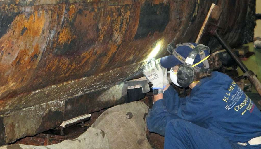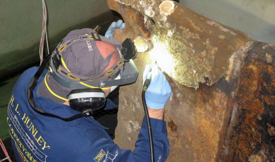 After 15 years of painstaking restoration, scientists say they are on the brink of solving what sank the Confederate submarine H.L. Hunley – the first sub in history to wreck an enemy warship. Considered the Confederacy’s stealth weapon during the Civil War, the hand-cranked Hunley sank the Union warship Housatonic in winter 1864 and then disappeared with all eight Confederate sailors inside. Its remains were discovered in 1995 in waters off South Carolina and five later it was raised to a conservation lab. Now with about 70per cent of the hull cleaned of heavy rust, Paul Mardikian, a senior conservator on the Hunley project, says that crucial clues have been unearthed but ‘it’s too early to talk about it yet.