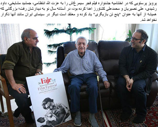 Parviz Parastouei won the film academy award and he met the most popular and famous legends of cinema at their home and talked with them about their life, future of cinema and problem and difficulty in this industry. After that he donated some memorial gifts.