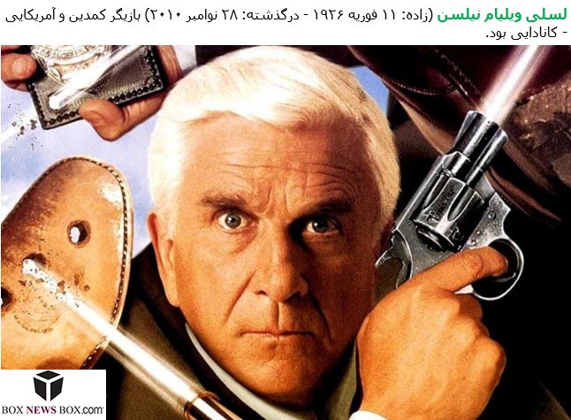 Leslie William Nielsen, OC (11 February 1926 – 28 November 2010) was a Canadian actor and comedian. He appeared in more than 100 films and 150 television programs, portraying more than 220 characters.Nielsen was born in Regina, Saskatchewan. He enlisted in the Royal Canadian Air Force and later worked as a disc jockey before receiving a scholarship to study theatre at the Neighborhood Playhouse. Making his acting debut in 1948, he made more than 50 television appearances two years later. Nielsen later made his film debut in 1956, with supporting roles in several drama, western, and romance films produced between the 1950s and the 1970s, with Nielsen crossing genres in both television and films.