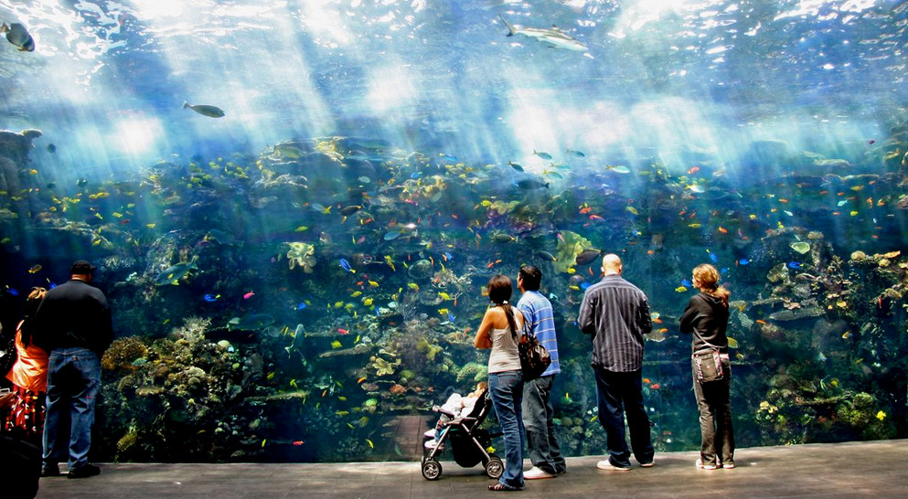 The Georgia Aquarium is a public aquarium in Atlanta, Georgia, United States. It houses more than 100,000 animals, representing 500 species, all of which reside in 10 million US gallons (38,000 m3) of marine and fresh water, and was the world’s largest aquarium when it opened in 2005.