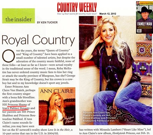 Ann Claire has already been accepted her by fellow musicians and members of the Nashville industry as a legitimate quantity with a down-home spirit, attitude and sensibility. As country singer Billy Currington said on meeting Ann Claire at the Sundance Film Festival back in 2006, this royal is “to me as country as turnip greens.” And as she observes, “Country music is for everyone.”Born in the Middle East, Ann Claire grew up in both London and Los Angeles, and was schooled in England, Switzerland and Spain before attending the University of Southern California to major in film and television and minor in sociology and graduate with honors.