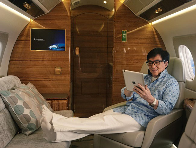 This week, the movie icon took delivery of a new Embraer Legacy 500 business jet. This is not Chan’s first private jet, nor is it his first Embraer. Chan, a brand ambassador for the Brazilian airplane maker, took delivery of an Embraer Legacy 650 in 2012. His new plane is the first Legacy 500 to be delivered to a Chinese customer.