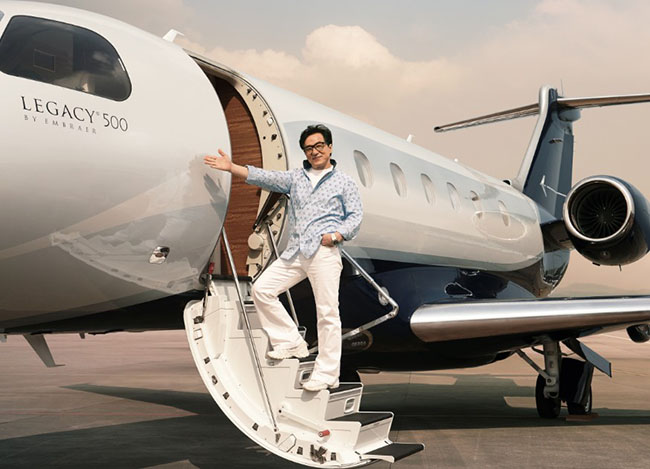 This week, the movie icon took delivery of a new Embraer Legacy 500 business jet. This is not Chan’s first private jet, nor is it his first Embraer. Chan, a brand ambassador for the Brazilian airplane maker, took delivery of an Embraer Legacy 650 in 2012. His new plane is the first Legacy 500 to be delivered to a Chinese customer.