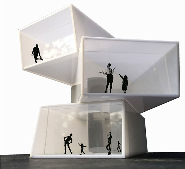 An inclined cylindrical shaft is located in the intersection point of boxes which covers the stairs and has shaped a void that due to its position supplies an oblique view among all three levels and improves family interactions.For having endless view, the sides of the boxes facing the plain have floor-to-ceiling windows with numerous panoramic views. Here windows acting a role more than just an opening or constructional element, They are like a transparent curtain between in and out that overflow interiors with natural vision.