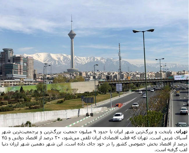 Tehran is the capital of Iran and Tehran Province. With a population of around 9 million in the city and 16 million in the wider metropolitan area, Tehran is the largest city and urban area of Iran, the 2nd-largest city in Western Asia, and the 3rd-largest in the Middle East. It is ranked 29th in the world by the population of its metropolitan area.