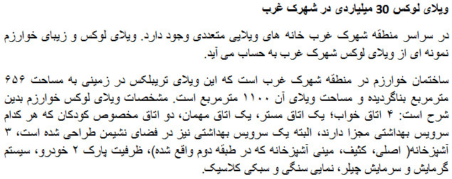 These 656 square meter villas – cost 30 billion toumans and are the most luxury villas available in the capital. They have four bedrooms, one guest room, two bedrooms for kids, all of the bedrooms have separate toilets. This villa is located in one of the most expensive areas in the capital. The property comes with two covered parking spots.