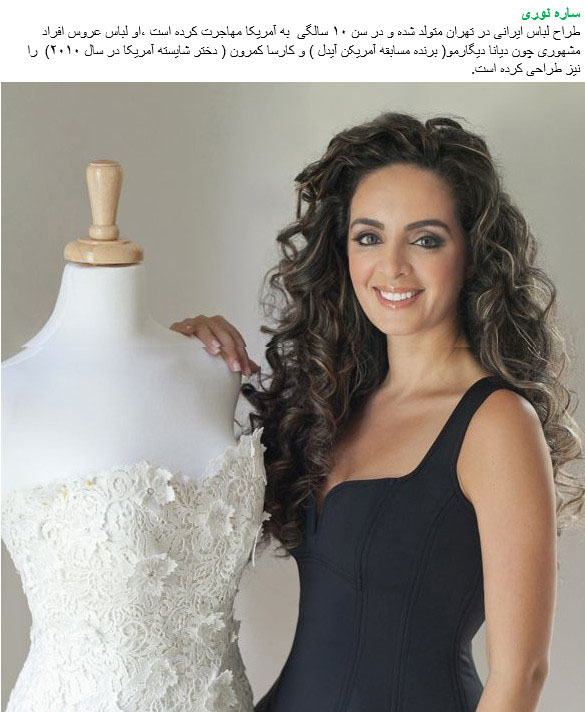 Sareh Nouri (born July 25, 1979) is a Persian-American fashion designer known for couture wedding gowns and bridal sashes.Sareh Nouri was born in Tehran, Iran and immigrated to the United States in 1989 at the age of 10. Her family lived in northern Virginia where she was raised from grammar school age. She graduated from George Mason University in 2004 with a Bachelor’s degree in Graphic Design. She worked on various commercial and non-profit media ads as a graphic designer. The line consists of four collections containing a total of 45 gowns. The gowns are handmade in the USA from silk tulle, silk organza and French lace, specifically lace from French lace house Sophie Hallette.