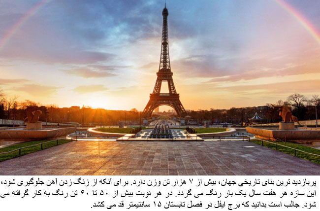 The most visited paid monument in the world Eiffel Tower weighs about 7000 tones. It is a very high maintenance building and requires painting every seven years to prevent the iron from rust. It uses around 50 – 60 tones of paint every time. Eiffel tower can expand up to 15cm in summers.