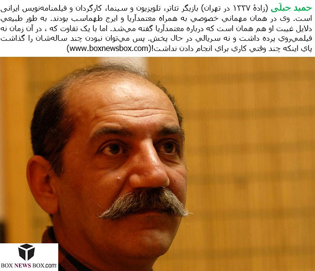 Hamid Jebelli is a theater and film actor and director. He was born in capital.. He has directed two films; Khab-e Sefid (White Dream) and Pesar-e Maryam (son of Mary). He is also the voice actor and famous puppet character, Kolah Ghermezi. His notable films as actor are: Mother, Del Shodegan, Kolah Ghermezi and Pesar Khaleh and Kolah Ghermezi and Bache Naneh.