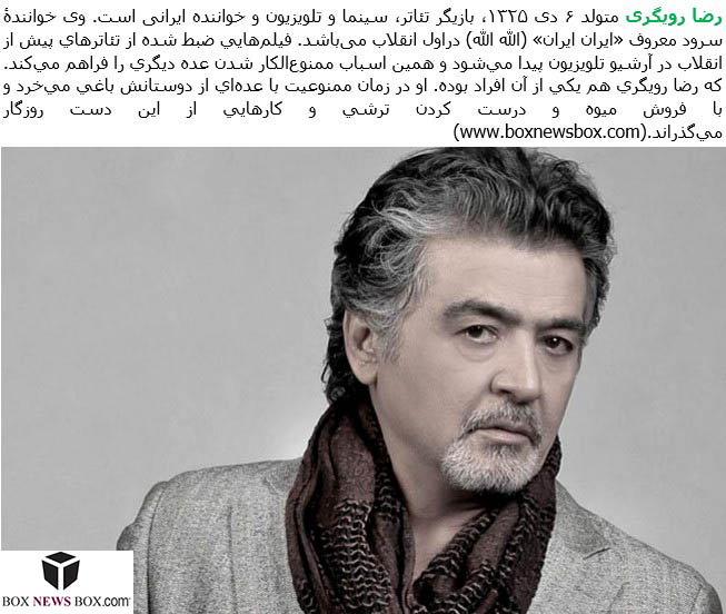 Reza Rooygari is an actor that known for his voice in a song for revolution.