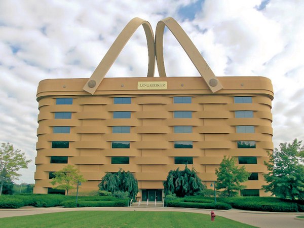 Because of its work selling baskets and other accessories, the Longaberger company headquarters is designed in the shape of a giant wooden basket. The handles are even heated to prevent ice forming and causing destruction or injury to the rest of the building and the employees.