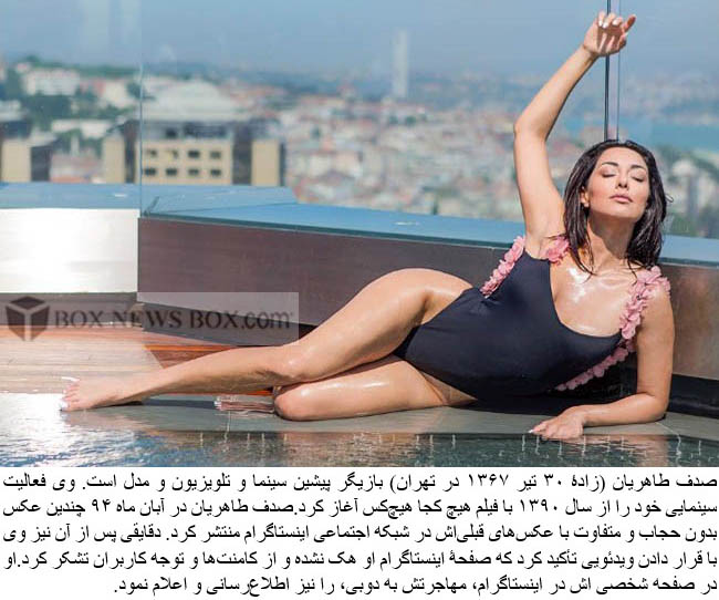 Sadaf Taherian (born July 21, 1988) is an actress and model. She had a few appearances in the Movies and TV before posting unveiled images of herself on Facebook and Instagram. She has also posted videos on her Instagram account, saying that she had left the country for nearby Dubai.