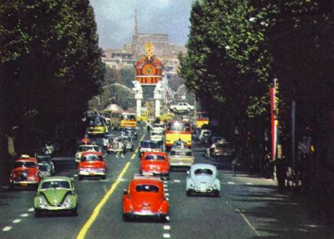 Pahlavi avenue ingress to Vali Ahd Square (Meydan e Vali Ahd) in the 1960s