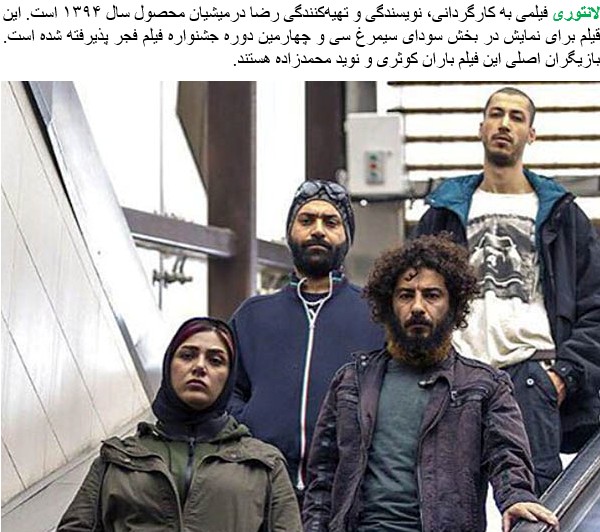 The Lantouri is a 2016 drama film that directed by Reza Dormishian. It was shown in the Panorama section at the 66th Berlin International Film Festival for people and jury. Baran Kosari and Navid Mohammadzadeh are the main actor and actress in Lantouri.