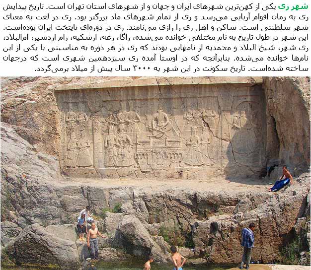 Located within the Greater Tehran metropolitan area, Rayy (or Rey), Iran, has evidence of habitation DATING back 8,000 years, though it has likely been continuously occupied for about 5,000 or 6,000 years. The city retains a wealth of historical monuments, such as the 5,000-year-old Cheshmeh Ali hill and the 3,000-year-old Gebri castle.