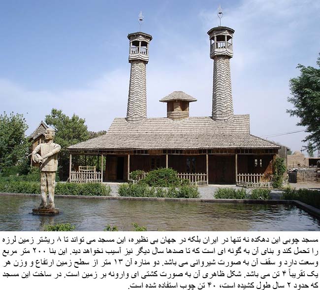 There is a mosque in the suburbs of the city that is greatly unique not only in country but also in the world, because it is completely made of wood. Even through this mosque is built by wood only, it resists earthquakes up to 8 Richter. The trays used in this mosque and faucets are made of wood as well. The woods have been processed to resist termite and decay.