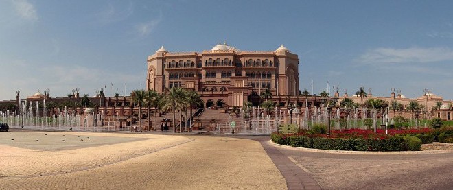 The Emirates Palace is a seven star luxury hotel in Abu Dhabi, United Arab Emirates. Built as a landmark showcasing Arabian culture, Emirates Palace, has created a niche in luxury hospitality. Situated on 1.3 km of private beach and with 114 domes that are 80 meters high, Emirates Palace comprises 394 rooms and suites carefully designed and furnished to offer guests superior comfort and luxury. The Beach Club boasts a six-kilometre cycling/jogging path, two outdoor pools, watersports. tennis courts, cricket, a rugby pitch and soccer facilities.