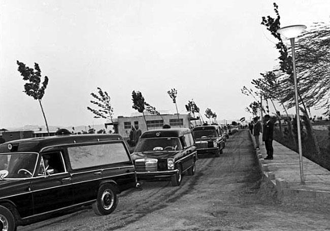 In the early 1950s, all the cemeteries in Tehran were supposed to be replaced by several large new ones outside the then precincts of the capital. Behesht-e Zahra was built in late 1960s on the southern side of Teheran towards the direction of the city of Qom and opened in 1970. The first person buried in Behesht-e Zahra was Mohammad-Taghi Khial.