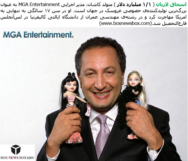 Isaac Larian born March 28, 1954 in Kashan, homeland is the Chief Executive Officer of MGA Entertainment, the biggest privately owned toy company in the world. Born to a Jewish family in Iran,Larian arrived to the United States alone at the age of 17. After graduating from California State University, Los Angeles in civil engineering, he started a business exporting electronic goods. Later in 2000, he expanded the company to include the creation, development and marketing of the Bratz doll. Currently his third child doesn’t have a Bratz doll, but that can change with the next release.He was named Ernst & Young Entrepreneur of the Year Award for the consumer products category in 2004. He was also named the overall national Ernst & Young Entrepreneur of the Year in 2007. His motto, “Fortune favors the bold” is displayed throughout MGA’s building.
