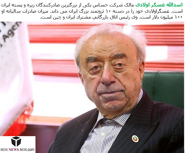 Asgar-Oladi was born to a merchant family. His ancestors converted from Judaism to Shia Islam.Asgar-Oladi is amongst the world’s wealthiest Iranians, and was named the third richest Iranian in the world and is the second wealthiest in Iran, with an estimated wealth in excess of $9 billion.His business empire dates back to the 1970s and, since then, Asgar-Oladi has become one of the leading exporters of dried fruits, nuts and spices from Iran.Asgaroladi is the president of Hasas Co. which is the leading exporter of nuts and pistachios from Iran since 1953. Asgaroladi increased his wealth dramatically in the 90’s when there were two official exchange rates for the US dollar.