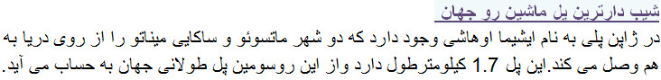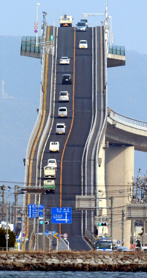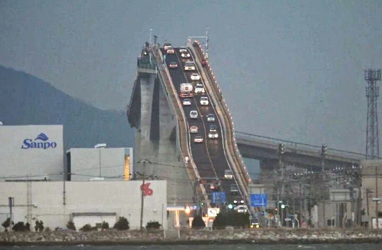 The Great Seto Bridge is a series of double deck bridges connecting Okayama and Kagawa prefectures in Japan across a series of five small islands in the Seto Inland Sea. Built over the period 1978–88, it is one of the three routes of the Honshū–Shikoku Bridge Project connecting Honshū and Shikoku islands, and the only one with railroad connections included. At 13.1 kilometers (8.1 mi), it ranks as the world’s longest two-tiered bridge system.Crossing the bridge takes about 20 minutes by car or train. The ferry crossing before the bridge was built took about an hour. The non-discounted toll from Kojima, Kurashiki (Okayama Prefecture on the Honshu side) to Sakaide (Kagawa Prefecture on the Shikoku side) is ¥3,500, and vice versa.