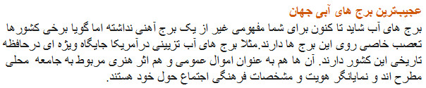 A water tower is an elevated structure supporting a water tank constructed at a height sufficient to pressurize a water supply system for the distribution of potable water, and to provide emergency storage for fire protection. In some places, the term standpipe is used interchangeably to refer to a water tower, especially one with tall and narrow proportions.Water towers often operate in conjunction with underground or surface service reservoirs, which store treated water close to where it will be used.Other types of water towers may only store raw (non-potable) water for fire protection or industrial purposes, and may not necessarily be connected to a public water supply.