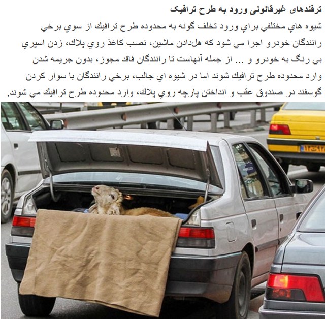 The Capital is one of the 10 largest cities in the world. The Traffic Authorities have always been involved by implementing world experiences directly or indirectly as Traffic Solution, based on both of the strategies. Because of complication of problems (due to the concentration of over 10 millions residents in a city without a larg effective public transportation network) automobile (or simply) “Auto” has easily found its place at the first stage in the City Traffic and Transportation Network.Today “Auto” plays two important roles for transportation in Tehran. Many efforts are done to improve transportation situation and realted isuues such as: air pollution, congestion, safety problem for pedestrians and cyclists, etc.