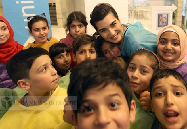 The actress, who won worldwide acclaim with her television series like Asi (Rebel) and Cesur ve Güzel (Brave and Beautiful) painted with the children and visited a picture gallery.