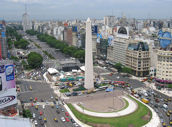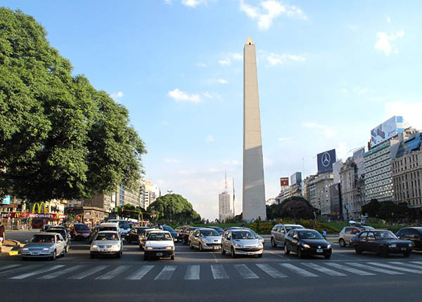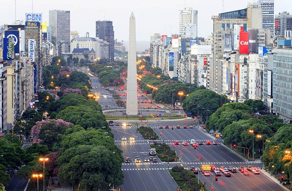 9 de Julio Avenue, located in the city of Buenos Aires, Argentina, is the widest avenue in the world. Its name honors Argentina’s Independence Day, July 9, 1816. The avenue runs roughly 1 kilometre (0.62 mi) to the west of the Río de la Plata waterfront, from the Retiro district in the north to Constitución station in the south. The avenue has up to seven lanes in each direction and is flanked on either side by parallel streets of two lanes each. There are two wide medians between the side streets and the main road. 9 de Julio elevated expressway which provides access to the two main southbound roads out of the city.